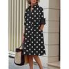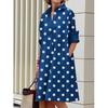 Frauen Sommer Herbst Revers Langarm Dot Gedruckt Mittellanges Hemdkleid