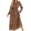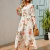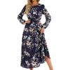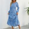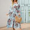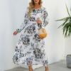 Herbst Runde Kragen Floral Gedruckt Elegante Dünne Lange Kleid Vintage Böhmischen frauen Rüschen Chiffon Kleider