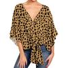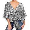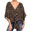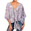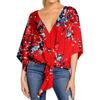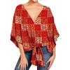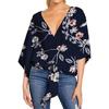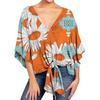 Damen Casual Blumenhemd Sommerstil V-Ausschnitt Kurzarm Fledermausärmel Lockeres Hemd Bohemian Stil Frontknoten Oberteil