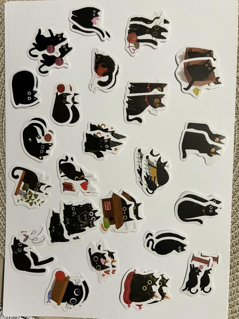 Niedlicher Katzenaufkleber, kreativer Kawaii-Aufkleber mit schwarzem spielendem Kätzchen, schöne Briefpapieraufkleber für dekoratives DIY-Sammelalbum