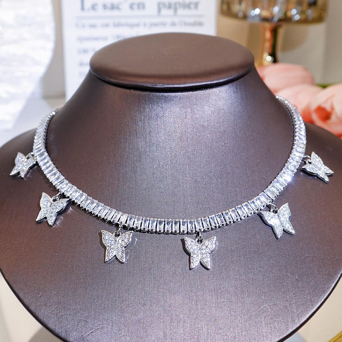 CMM European Wild Choker Fashion Simple Butterfly Shaped Pendant Tassel Necklace Street Hip-Hop Cool Short Inlaid Zircon