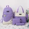 Koreanischer Canvas-Rucksack für Studenten, vierteiliges Rucksack-Set, modische Kontrastfarbe, wasserdichter Rucksack mit großer Kapazität