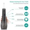 Über USB wiederaufladbarer Wasserstrahl-Zahnseide-Apparat mit eingebautem 1100-mAh-Akku, das vollständige Aufladen dauert nur 4 Stunden und unterstützt die Verwendung für 21 Tage.. Perfekt für den Einsatz auf Reisen, unterstützt Netzadapter, Computer, Autoladegerät und Aufladen von Powerbanks.