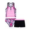 Kinder Mädchen 3-teiliger Badeanzug mit ärmellosem Oberteil und Shorts, Blumenmuster, Tankini-Badeanzug