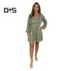 Freuen Sie sich über den schicken V-Ausschnitt und die taillierte A-Linie dieses Kleids, akzentuiert durch die mit Pailletten besetzten Laternenärmel für einen Hauch von raffiniertem Charme.