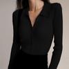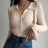 POLO-Kragen Pullover Pullover Damen Frühling Herbst Hemd Langarm Kurzer Umlegekragen Aushöhlen Knitted Tops Einfarbig Einheitsgröße