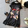 Damen-Kleid in Übergröße, lockeres A-Linien-Kleid, schwarzes langes T-Shirt-Kleid, seidig und bequem