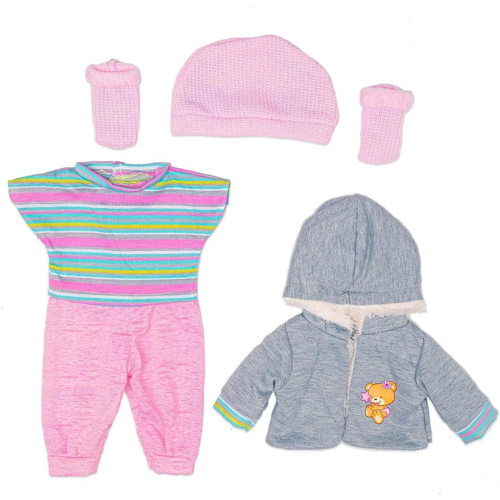 Puppenkleidung Puppenkleidungsset mit Mantel, Bluse, Hose, Mütze und Socken für 36 – 43 cm große New Born Babypuppen (Keine Puppe)