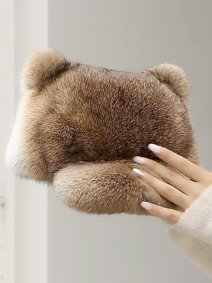 Neue Stil Frauen Kaninchen Pelz Kappe Krempe Niedlichen Ohren Hut Mädchen Winter Warm Echte Natürliche Kaninchen Fell Dicke Warme Hüte