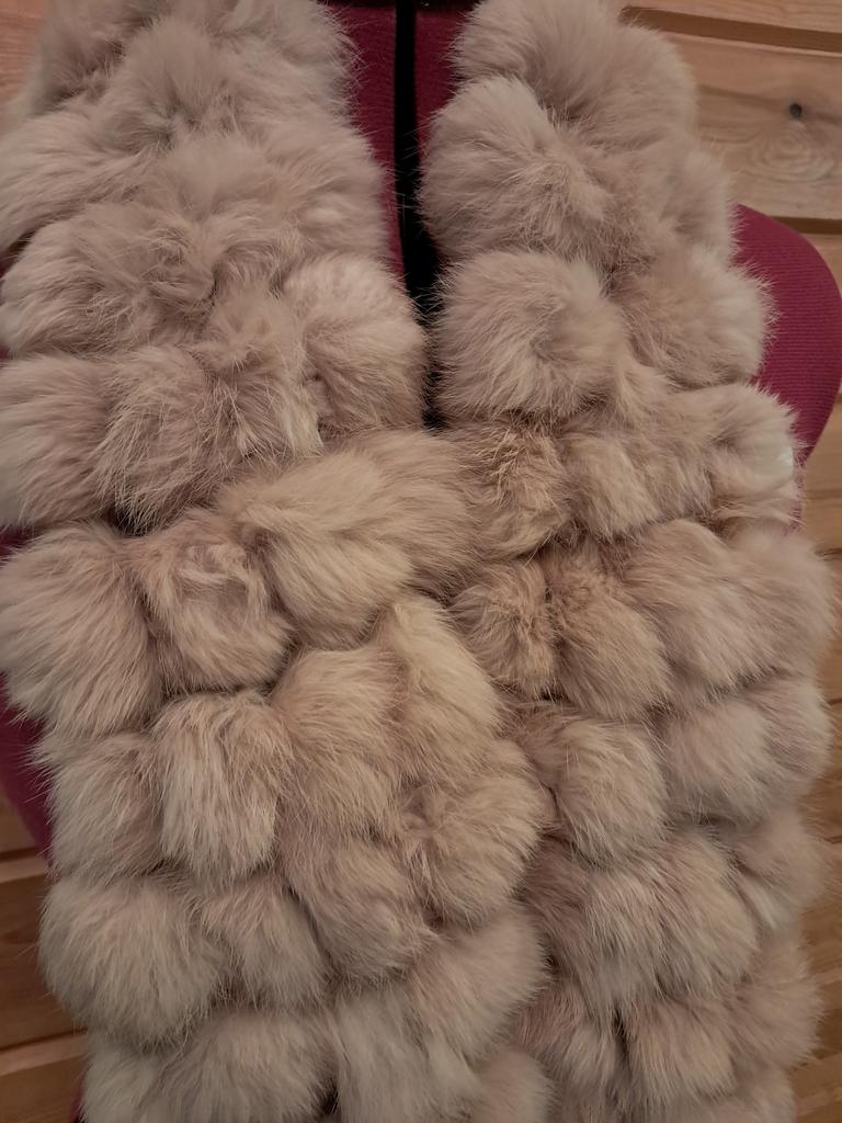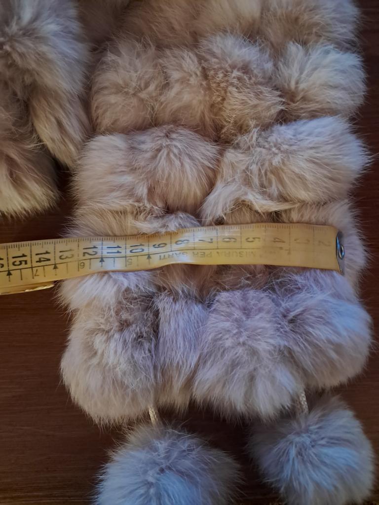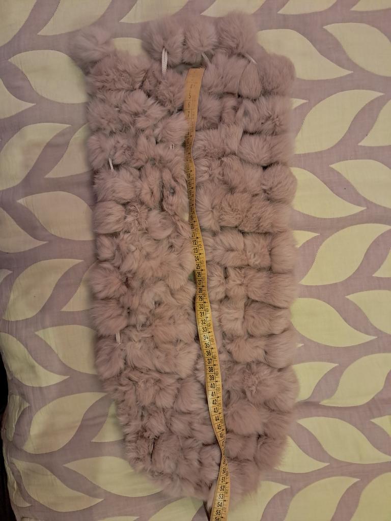 Sehr süßer Schal! Hergestellt aus Kaninchenfellbällen. Es sieht sehr originell, elegant und flauschig aus. Vielen Dank für das wundervolle Produkt! Ich empfehle