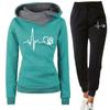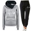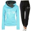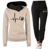Neues Frühlings- und Herbst-Winter-Freizeitsport-Set, Herzschlagfrequenz-bedruckter Damen-Hoodie, Sweatshirt-Set, trendig