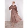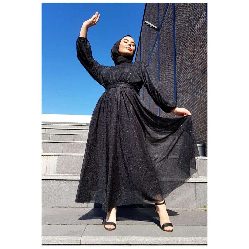 Silbrig-schwarzes Hijab-Abendkleid mit Taillengürtel