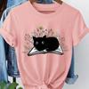 Mode Frauen Schwarze Katze Blume Buch Print T Shirt Lustige Casual Oansatz Kurzen Ärmeln T-shirt Sommer Weibliche T-shirt