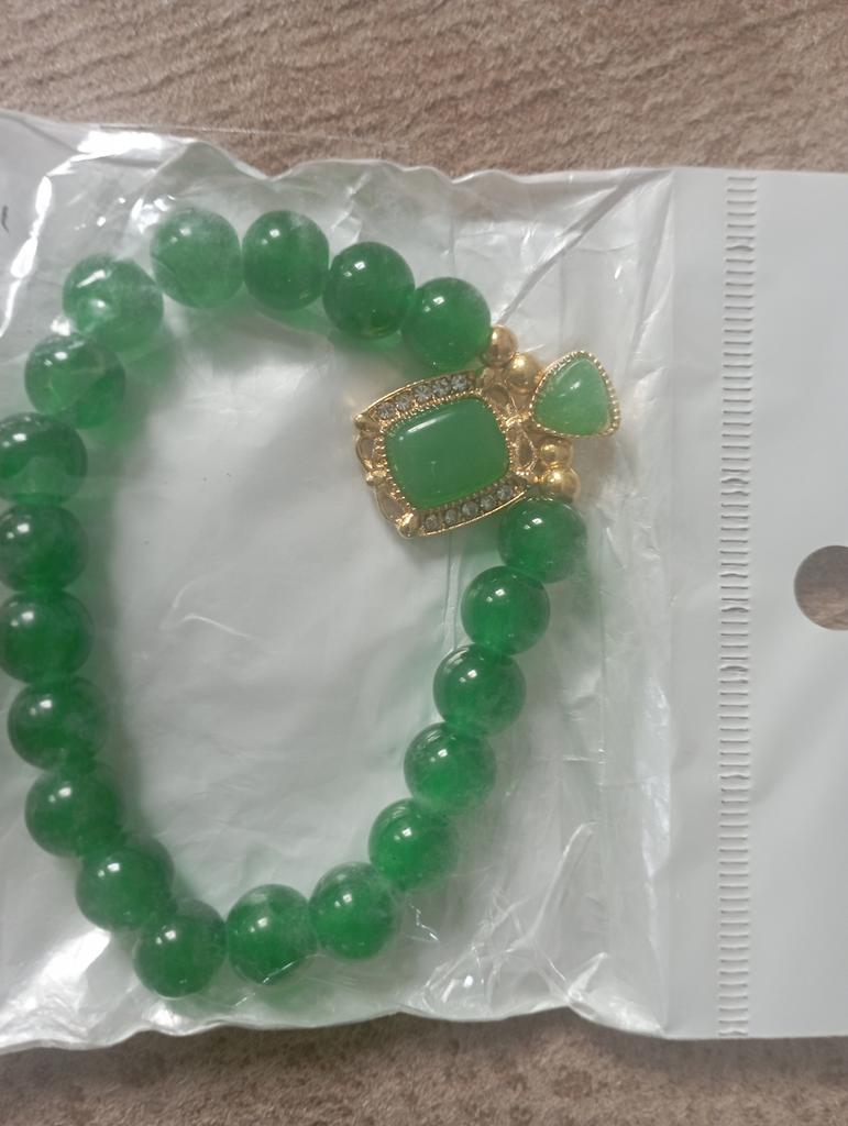 Das Armband kam in einer dunkelgrünen Farbe und mit kleineren Steinen an, als ich bestellt hatte. Und in der Größe für eine Kinderhand.