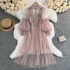Damenkleid Dreidimensionales Blumenhaken-Netztemperament Stehkragen Laternenärmel Hohe Taille Schlanke Damenkleider