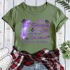 Mode Damen Lila Feder Buchstaben Print T-Shirt Lustig Lässig O-Ausschnitt Kurze Ärmel T-Shirt Sommer Damen T-Shirt