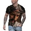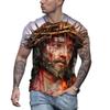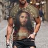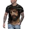 Retro Herren T-Shirt Jesus Muster T-Shirt Herren Lässiges Kurzarm T-Shirt Schnelltrocknend Große Kleidung Top Street Kleidung