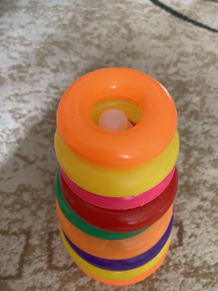 Das Spielzeug ist bunt. Die Ringe sind leicht, weich. Wie in der Kindheit