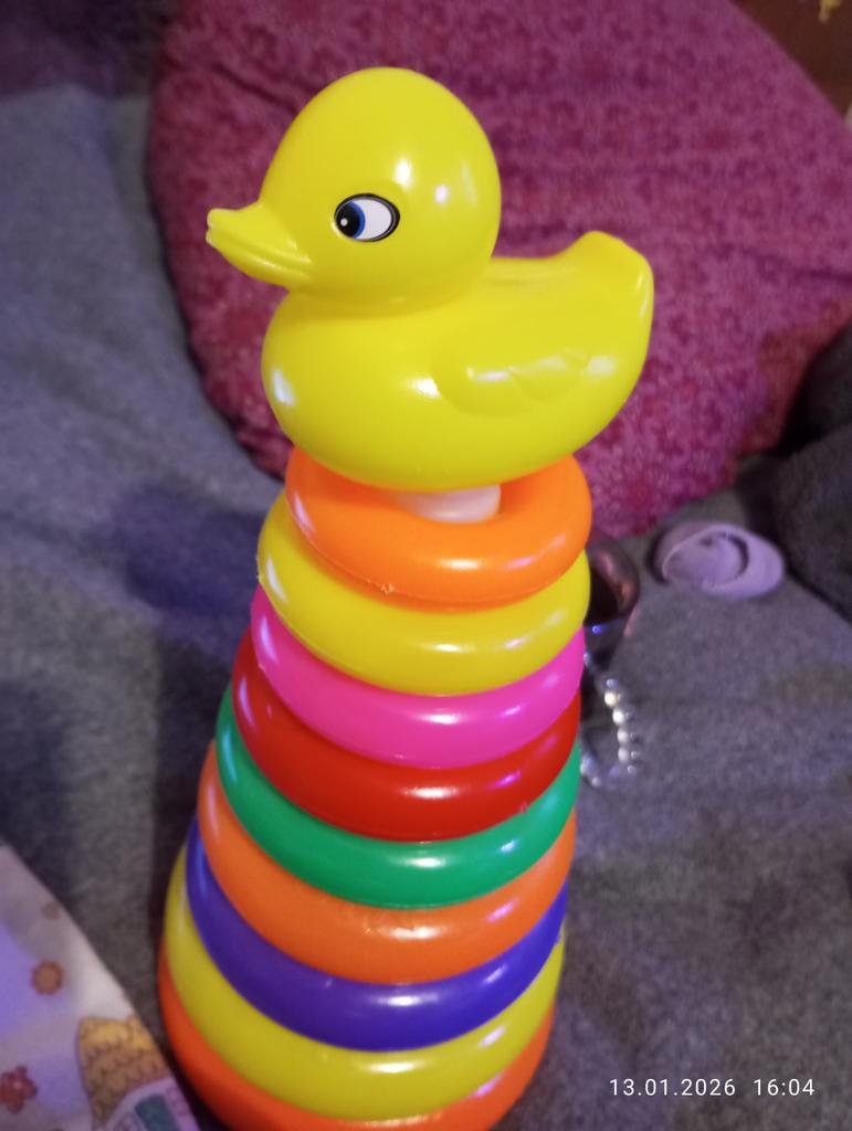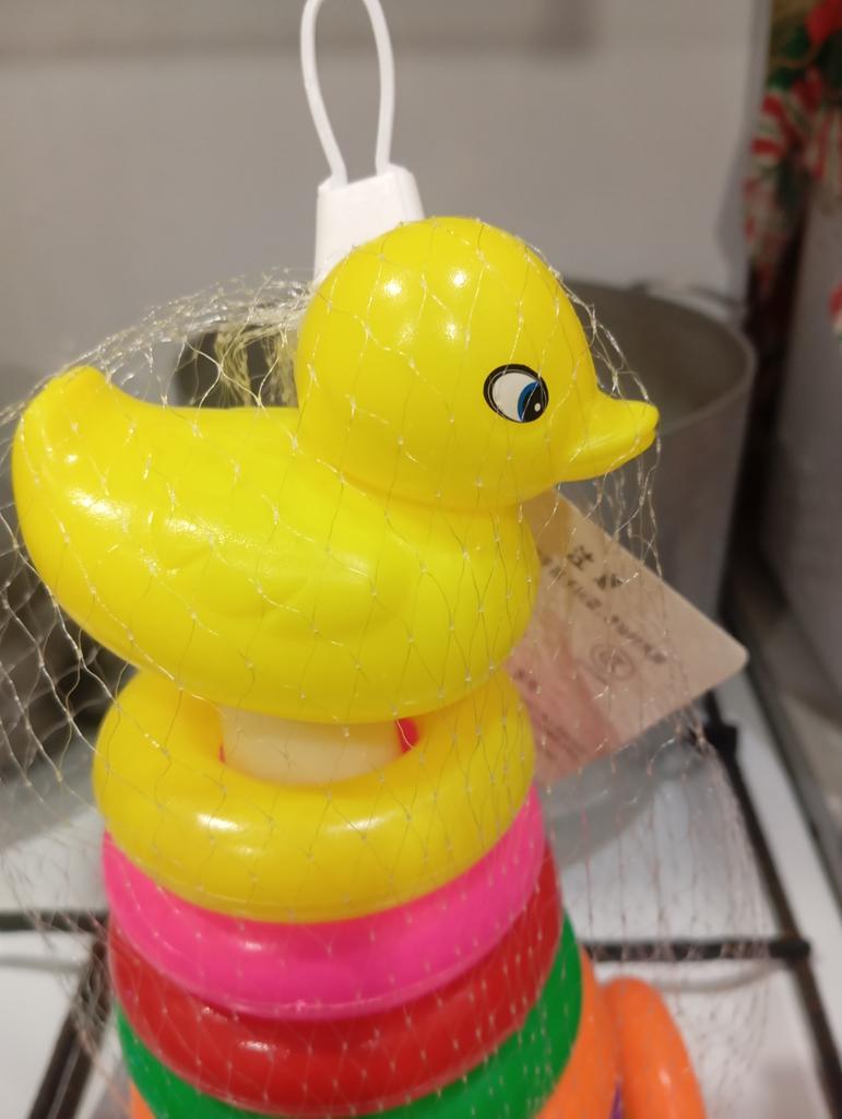 Gutes Spielzeug, die Qualität für das Geld ist normal. Die Ente kam ohne Auge an) Ich warte darauf, dass das Kind anfängt, selbst zu sammeln.