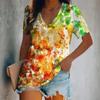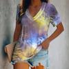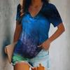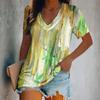 Damen Neues Kurzarm-V-Ausschnitt-T-Shirt mit gedrucktem Farbmuster, Übergroßes Damenoberteil im Y2K-Stil, Atmungsaktives T-Shirt