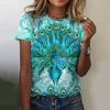 Sommermode Damen T-Shirt Pfauenfeder 3D-Druck Top Harajuku Bunte Persönlichkeit Kurzarm T-Shirts Übergroße Kleidung