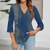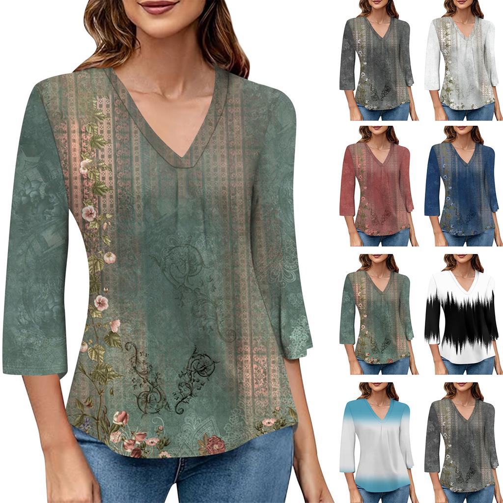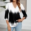 Modisches Oberteil mit V-Ausschnitt, Farbverlauf-Print und Dreiviertelärmeln für Damen