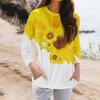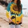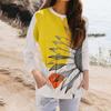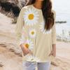 Damenmode Lässiges T-Shirt mit Rundhalsausschnitt, 3/4-Ärmeln und Tasche