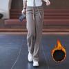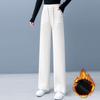 Gepolsterte Hose mit geradem Bein für Damen im Herbst und Winter, einfarbig, hohe Taille, drapiert, warm, schmale Freizeithose