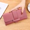 Damenbrieftasche, lange, dreifach gefaltete Klappe, koreanische Version der kleinen, frischen Studentenbrieftasche mit Wechselfunktion und Schnalle aus Leder