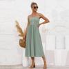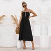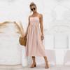 Frühling Sommer Einfarbig Langes Kleid Frauen Casual A-line Spaghetti Strap Ärmel Hight Taille Schlank Taste Süße S-XL