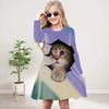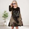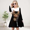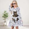 Mädchen Casual 3D Druck Textur Katze Rundhals Langarm Kleid Kind Prinzessin Kleid