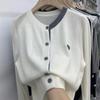 Damen Herbst Winter Strick-Cardigan Einreihig Rundhalsausschnitt Farbblock Elastisch Warm Anti-Pilling Damen Pullover Mantel