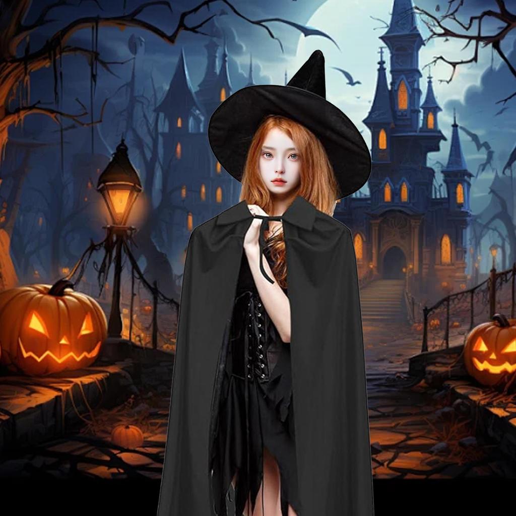 - 【Feine Verarbeitung】: Halloween Umhang für Erwachsene in toller Verarbeitung. Die Nähte sind alle sauber und an Ort und Stelle. Halloween-Umhang: 140 cm, spitzer Zaubererhut: 38 cm x 36 cm/14,96 Zoll x 14,17 Zoll.