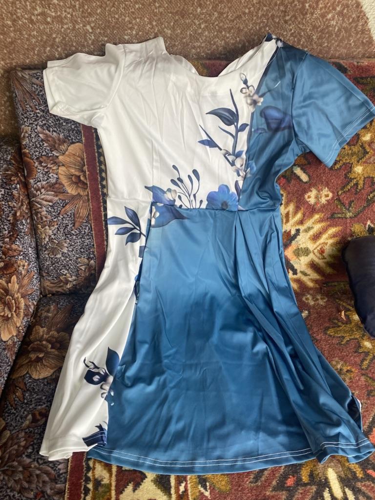 Damen Casual Fashion Kleid Vintage Bedruckt Rundhals Kurzarm Taillen Midi Lang Big Swing Kleider