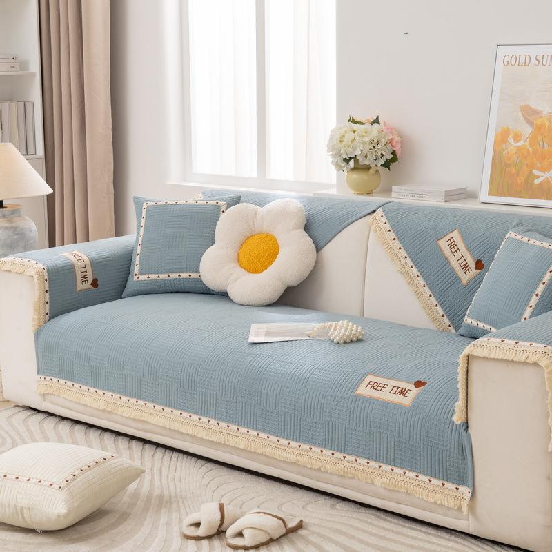 Die Größe der Sofabezüge, die Sie wählen, sollte 20 ~ 30 cm größer sein als die tatsächliche Größe des Sofas. Der Restteil kann heruntergehängt werden, um die Seite des Sofas zu schützen, oder unter dem Sofa versteckt werden, um ein Verrutschen zu verhindern.