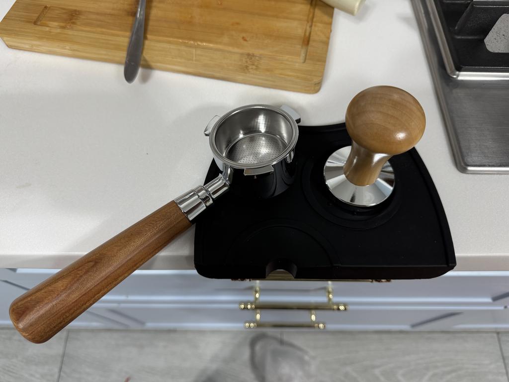 Kaffee Tamper aus Edelstahl Flacher Espresso Tamper Holzgriff Kaffeepulver Hammer Barista Werkzeuge Kaffeezubehör 58MM/51MM