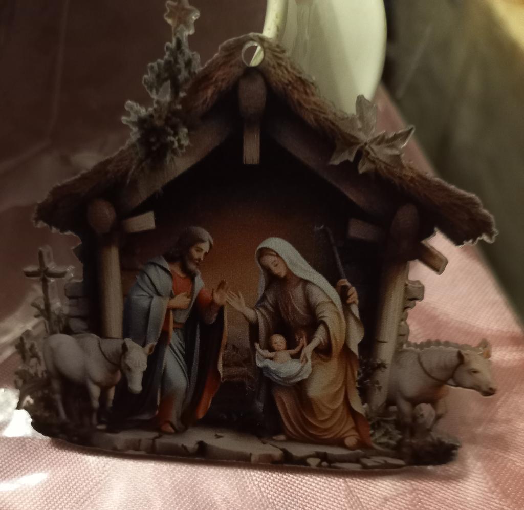 Weihnachtsanhänger, Ornament, Anhänger mit Gebetsszene und Jesus-Familie, leuchtend farbiger Anhänger mit religiösem Symbol für Zuhause und Auto