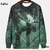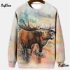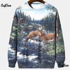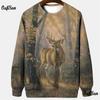 Jagd-Hoodies für Herren Outdoor-Bekleidung 3D Elch-Druck T-Shirt Übergroßes Langarm-Oberteil Rundhals-Pullover Herren Camouflage-Bekleidung
