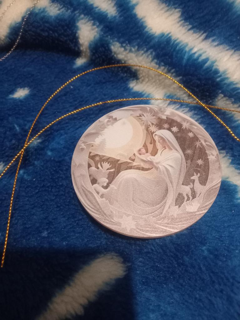 Dieser wunderschöne Anhänger zeigt die Geschichte der Geburt Jesu und symbolisiert Glück und Segen. Der klare Druck auf der hellen Oberfläche lässt das komplizierte Muster leuchten und macht es perfekt zum Aufhängen an einem Weihnachtsbaum..