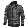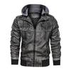 Winter Herren Motorrad Lederjacke Männer Mode Braun Dicker Reißverschluss Mantel Männliche Kapuze Windjacke Outwear