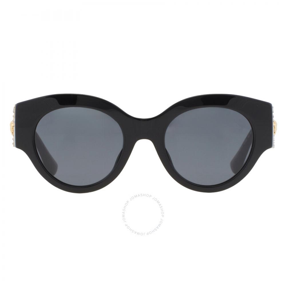 The Versace Dark Grey Round Ladies Sunglasses model VE4438BF GB1/87 52 features a sophisticated blend of style and functionality. With a round frame shape, these sunglasses provide complete UV protection, ensuring your eyes remain shielded from harmful rays. The lenses come in a striking dark grey color, adding a touch of elegance to your summer look. Made from high-quality metal and plastic, the frame is both durable and lightweight. The color scheme of black and gold gives it a luxurious touch that complements any outfit.