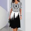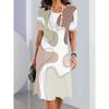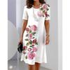 Rundhals Print Blumenkleid Taillenbetontes Elegantes Kleid für Damen Kurzarm Lockere Kleider Causal Kleid