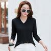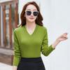 Neues koreanisches V-Ausschnitt Einfarbig Langarm T-Shirt für Damen Slim Unterhemd Frühlingsoberteil für Damen