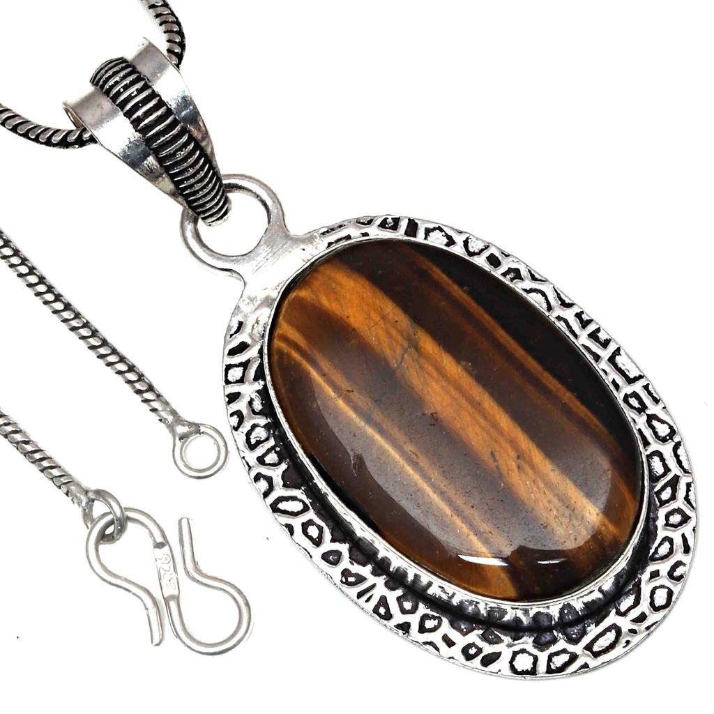 Pendant Tiger's Eye Gemstone Valentine'Day Gift Silver Jewelry 2.5"
