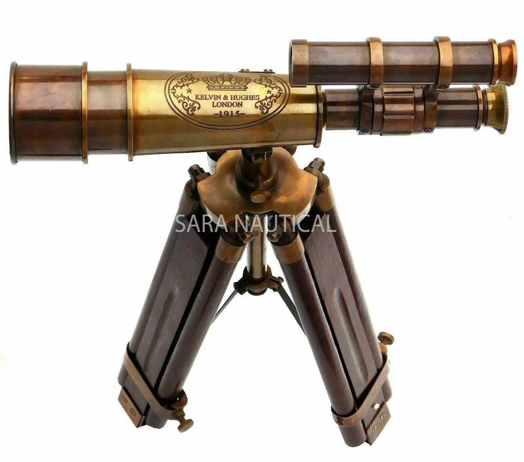 Nautical Brass Telescope Sptglass Wooden Tripod Stand Collectible Desk Decor