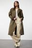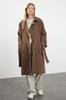 Women's Fashion Mink Belted Windbreaker Detailed Water Repellent Long Trench Coat