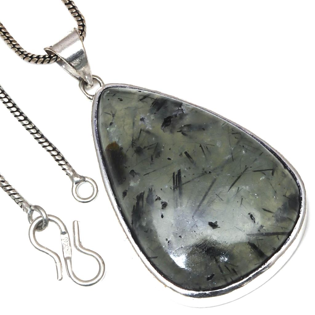 Pendant Black Rutile Gemstone Valentine'Day Ethnic Silver Jewelry 2"