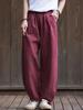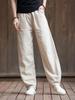 Damen Leinen Gestreifte Hose Einfarbig Elastischer Bund Frühling Hose 2024 Neue Freizeitkleidung Damen Lässige Lange Hose