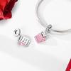 Authentischer 925er Silber-Charm für modisches Armband, S925 Sterling Silber, rosa Liebes-Schreibmaschinen-Charme, DIY-Mädchen-Schmuck, Anhänger, Geschenk