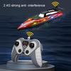 2,4G 4-Kanal-Funkfernbedienung mit Hochfrequenz-Fernbedienungssignal, starke Entstörungseigenschaft, Fernbedienungsdistanz bis zu 80 Meter, kann für mehrere Boote gleichzeitig verwendet werden, ohne gegenseitige Störungen.
